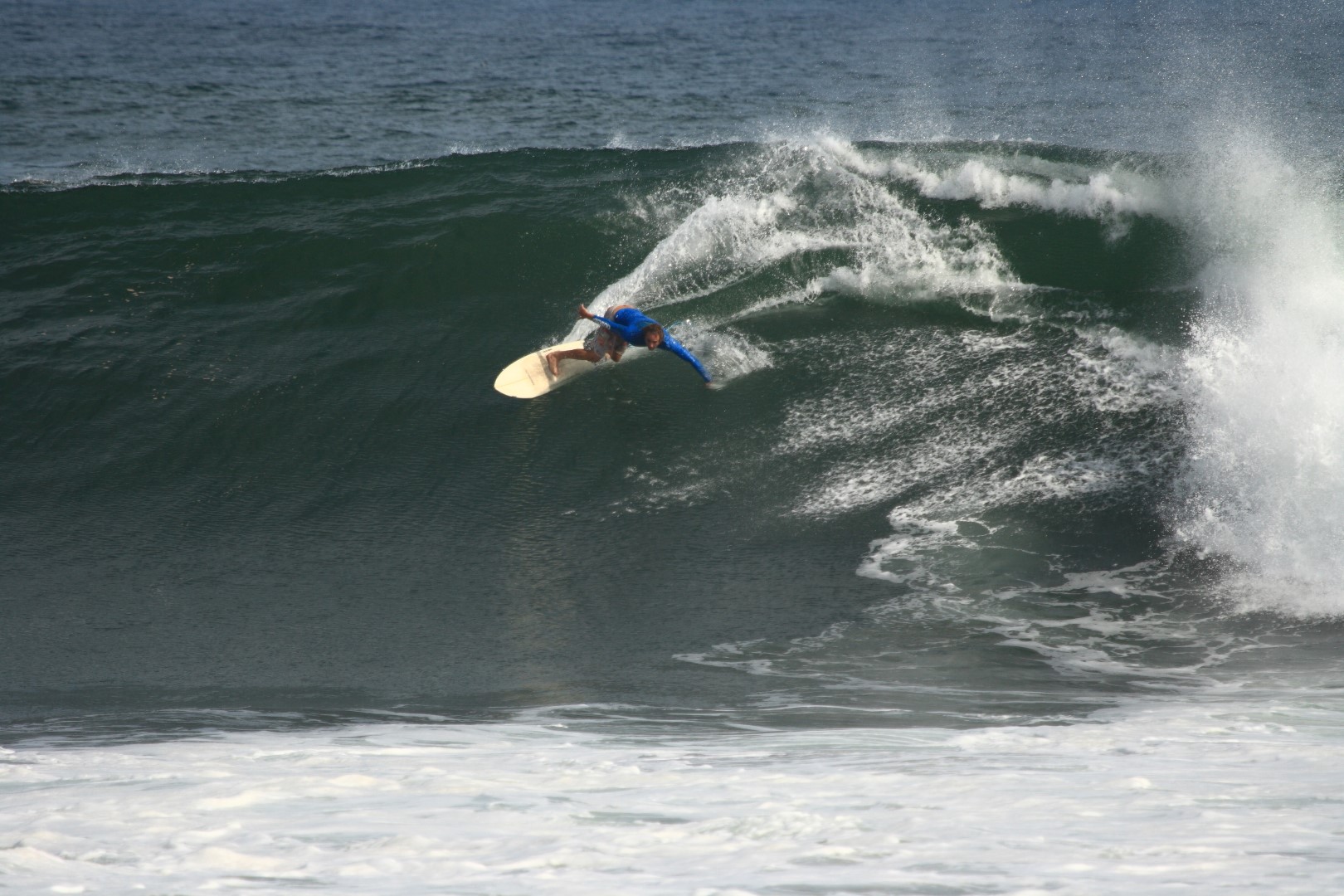 Surfing the point small but fun during the first week, it was all about healthy living ready for the monster forecast swell the following week. The locals, knowing how accident prone I was, suggested to Nathan that he slip me a sleeping pill during the forecast swell, so as to avoid any further incidents with the infamous boulders that form El Salvadors dream wave. The swell arrived, smaller than predicted, but still pretty sizey for me, and of course it did not pass without a few scrapes. Day one, paddling back out after one of the biggest waves of my trip, I got cleaned up, snapped my leggy and had to swim in, scramble in over the rocks and rescue my poor battered favourite board. I then spent the rest of that swell surfing a new board that I still hadn’t quite figured out yet. Gutted.