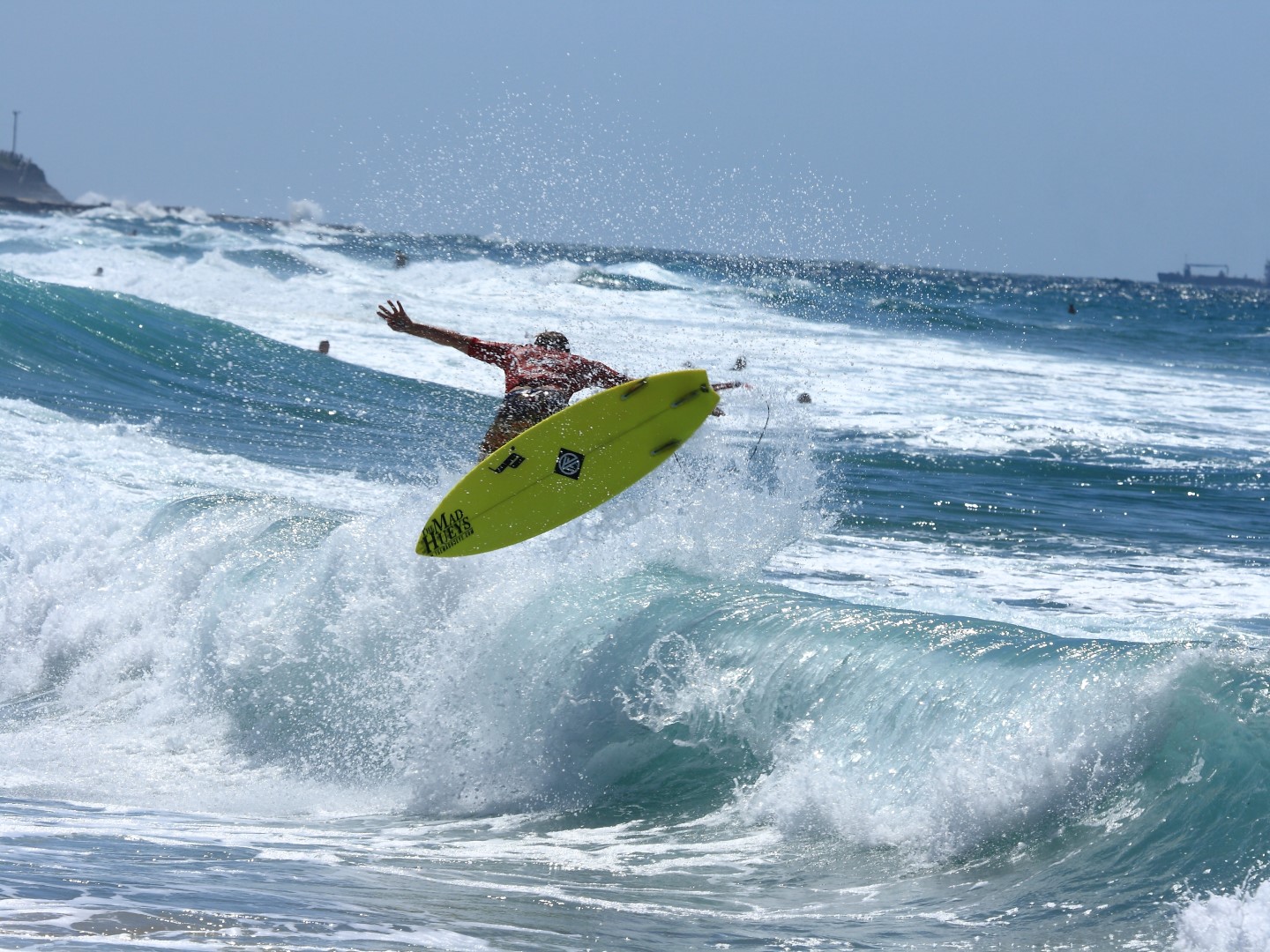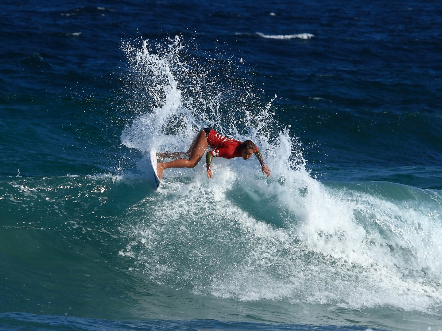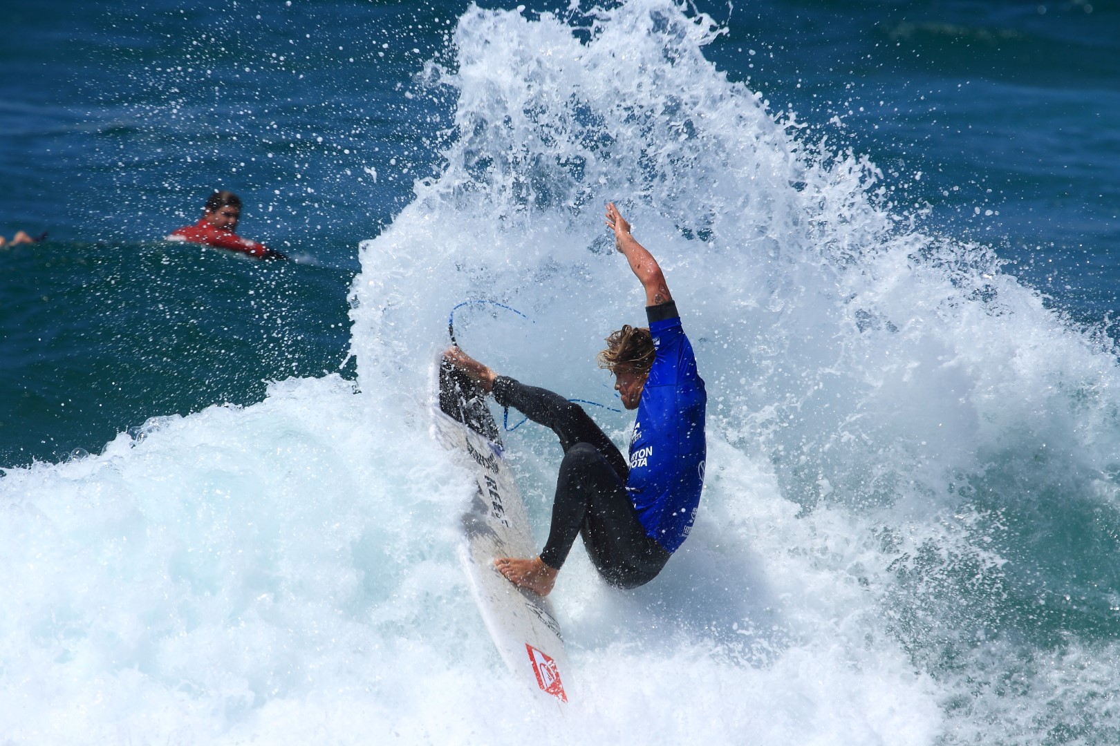 Merewether local Jake Sylvester blowing up…knocked out just before the Quarters. Photo: SaltyLips|Nathan Bloemers