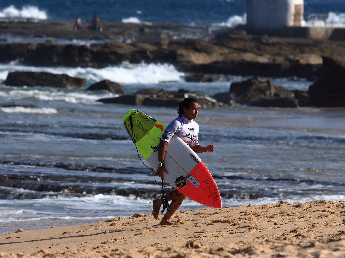 Another standout performance was Brazils self-funded Silvana Lima, with her progressive style and damn near landing an air reverse in one of her heats, [a rare manoeuvre to be attempted in women’s competition even at WCT level]. Silvana is an interesting story in her own right; during her World Title bid in 2012, she suffered a knee injury early in the season and was forced to take the rest of the season off to rehabilitate. Receiving an injury wildcard in 2013, Silvana had to pay her own tour costs after being dropped by all her sponsors. She failed to requalify for the 2014 season, not due to poor results, but because of the amount of results she was able to collect due to lack of funding. This lead to the innovative project Silvana Free; rather than seeking conventional sponsorship from apparel brands looking for athlete come bikini models, Silvana is asking us, the surf fans, to help raise the funds for her 2014 tour bid. Check out Silvana Free for more information.