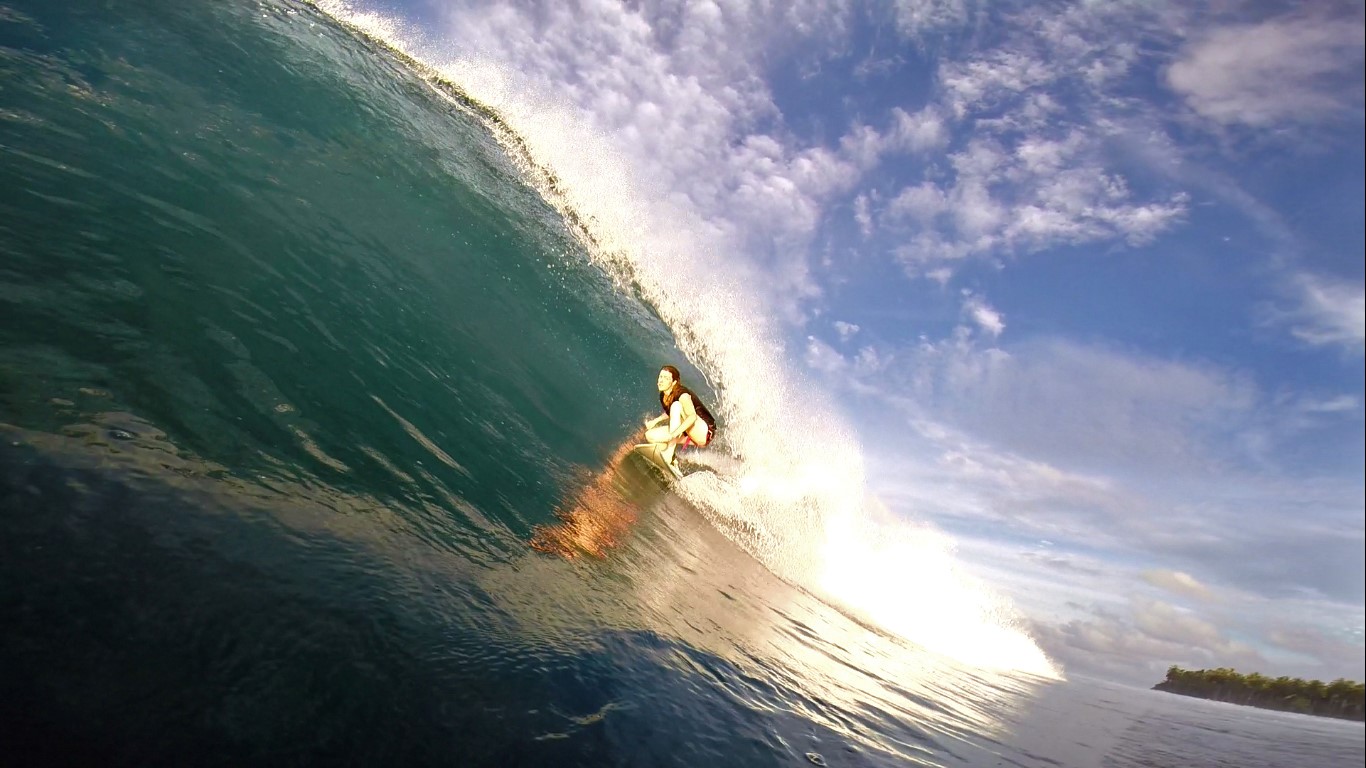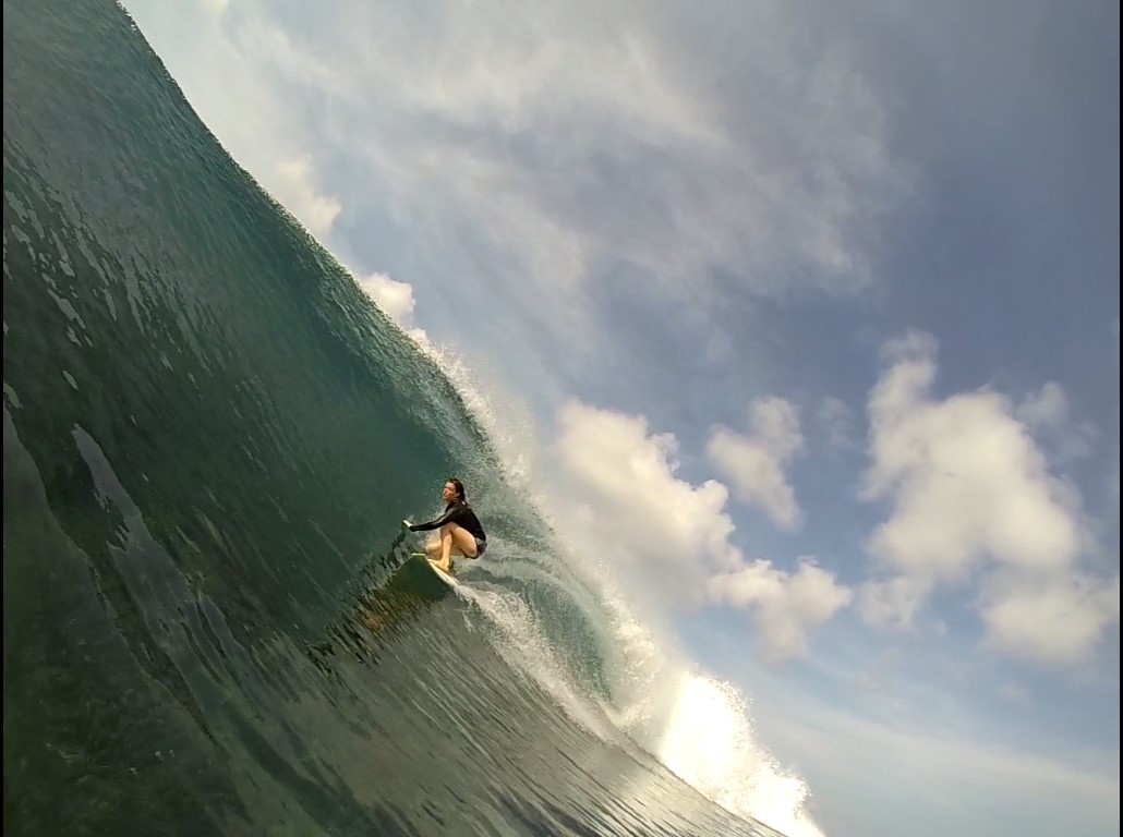 Fuelled by enough over-cooked veggies, fried eggs and rice to last an entire lifetime, Rosary got some great waves, hit the reef a LOT sustaining plenty of cuts and bruises, and was munched on a daily basis by hordes of mozzies. It was all worth it for the barrel time … as we can see!!!