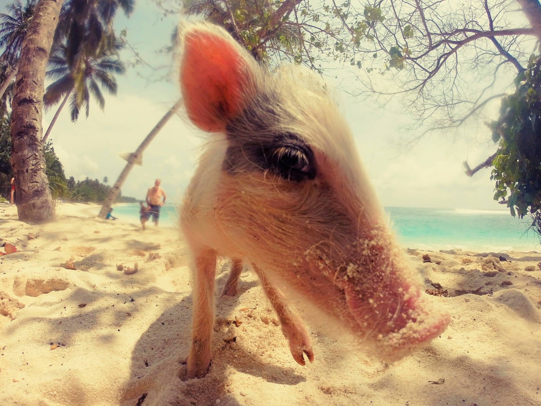 “Our pet pig, Babi Girl, is really cool, she can sit on command. I think she must have watched the dogs and learnt from them. And she loves cuddles… as soon as you start patting her, she flops down on the ground for a tummy scratch!”