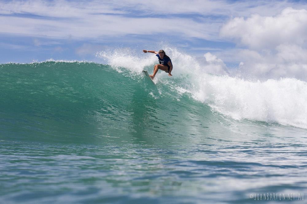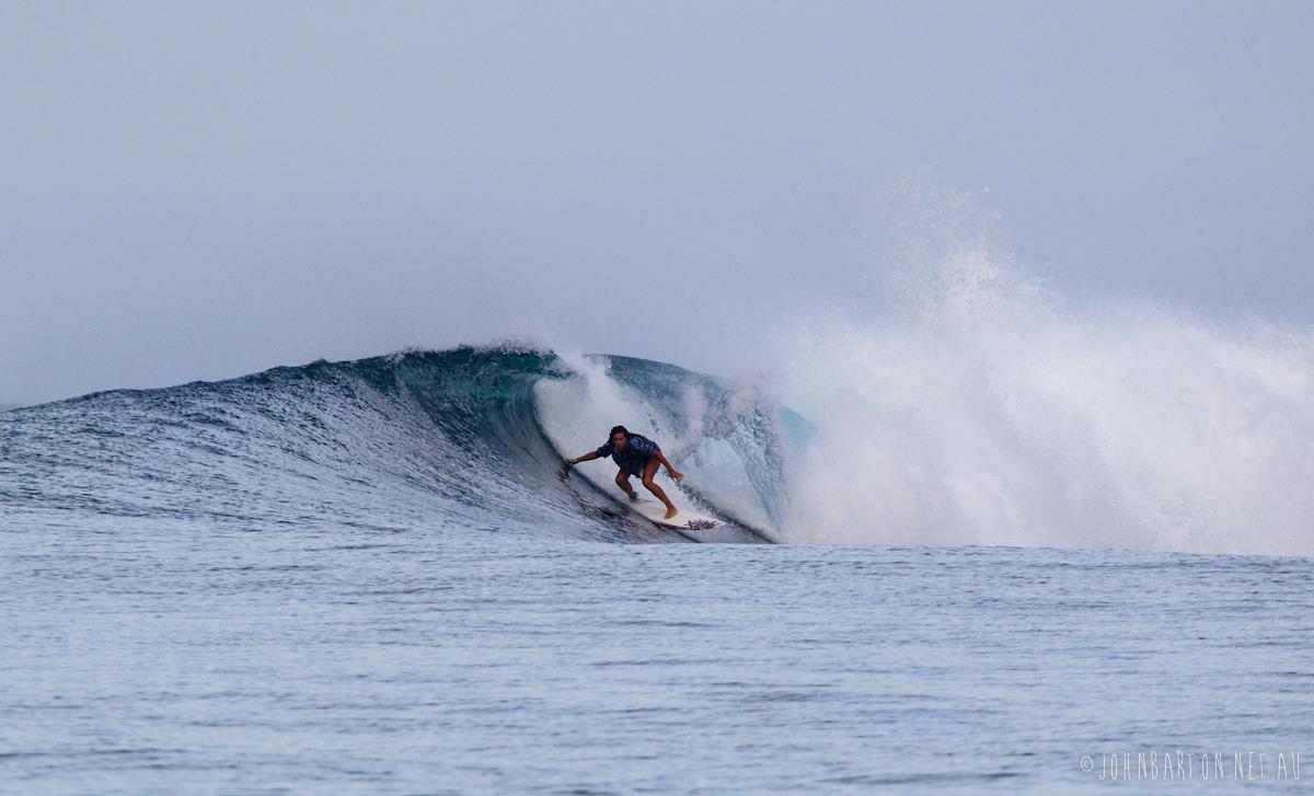 I actually came close to drowning in 2 metres of water at Burger World! When it gets mushy and the swell’s a bit big the current pulls pretty hard along the side of the island. I’d come off on the first wave of the set pretty close to the waters edge and my leash caught midway around a coral head, board on one side me on the other. The water was so powerful that I couldn’t even reach my ankle to undo the leash. It’s weird to think I couldn’t just stand up but my feet wouldn’t touch the ground and the water just kept coming. It was the biggest lesson that panicking doesn’t help any situation.
